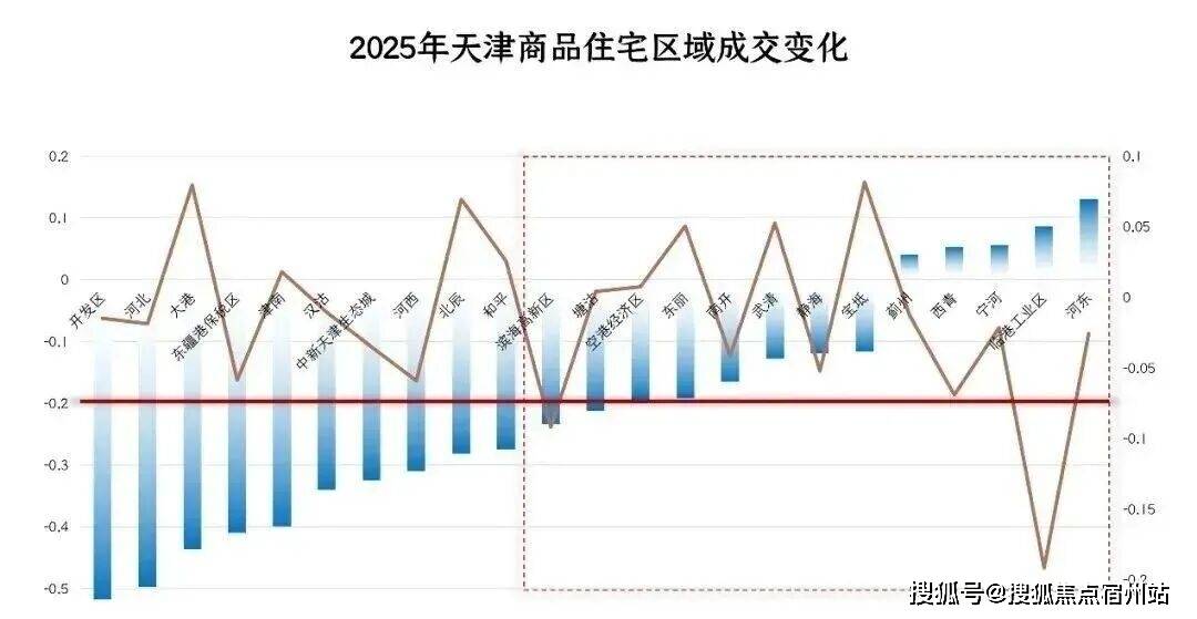 ”的恶性循环,本质是“稳预期”而非“保涨价”。从市场数据来看,天津楼市的调整压力已持续一段时间,成为政策出台的直接诱因。克而瑞数据显示,2025年天津新建商品住宅销售金额达1165.1亿元,同比下降21.3%;销售面积658万平方米,同比下降21.1%,量价齐跌的态势较为明显。尽管2025年全市新房成交均价仅微降0.2%,看似波动不大,但区域分化极为突出。2026年1月最新数据显示,武清区新房价格环比下跌9.37%,红桥区环比下跌5.57%,蓟州、宁河等远郊区域也出现不同程度下跌,仅河西、河东等核心城区呈现微涨态势,市场分化格局进一步加剧。